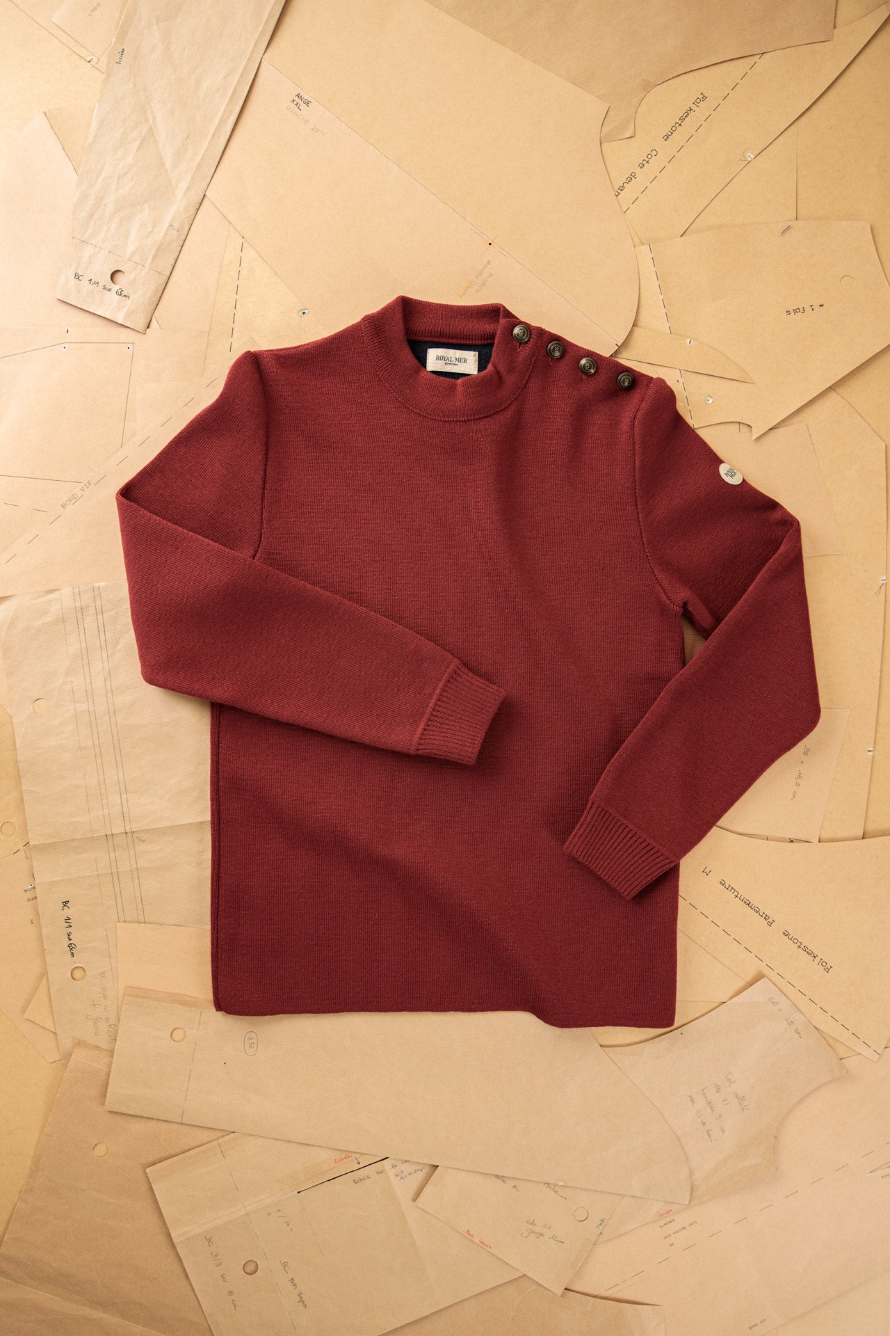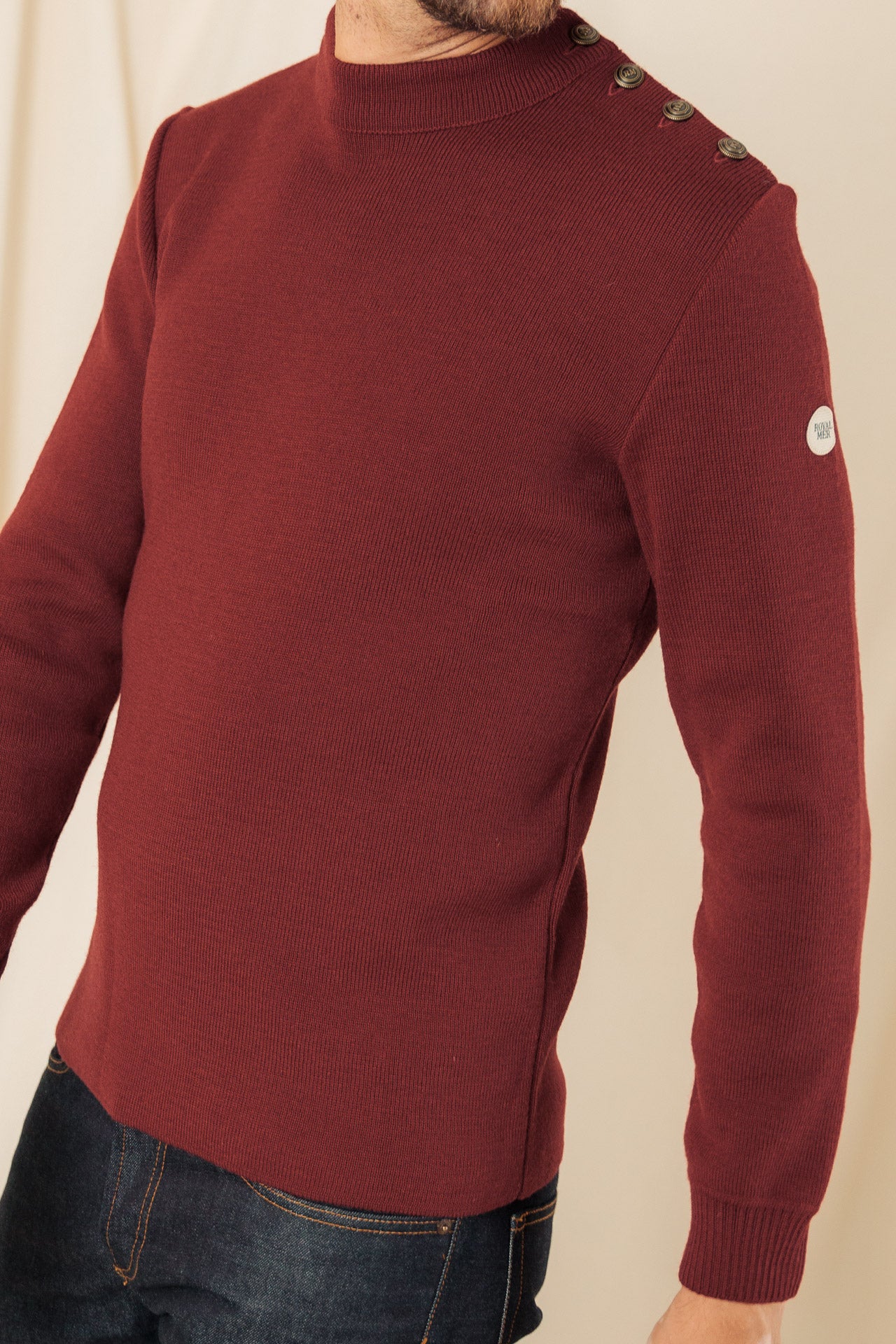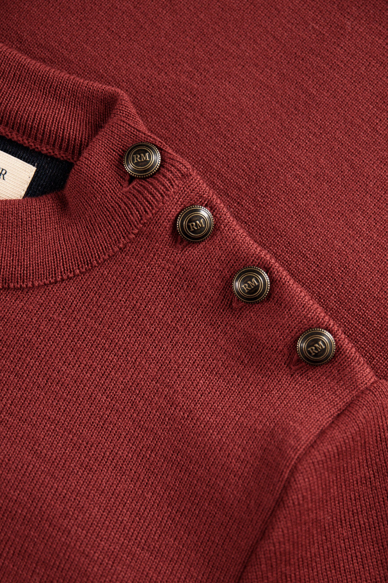 Ce pull se distingue par sa coupe ajustée et son col marin, ajoutant une touche moderne à votre garde-robe. Le boutonnage sur l'épaule gauche, agrémenté de boutons en bronze, confère à ce modèle un aspect pratique et distinctif.