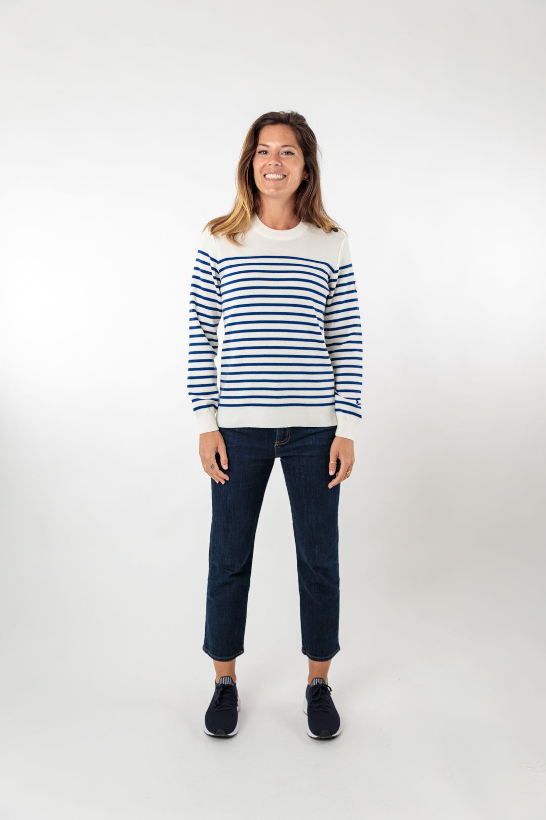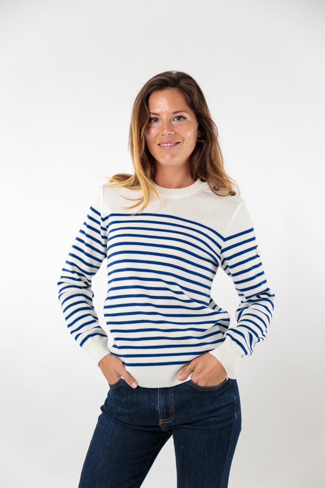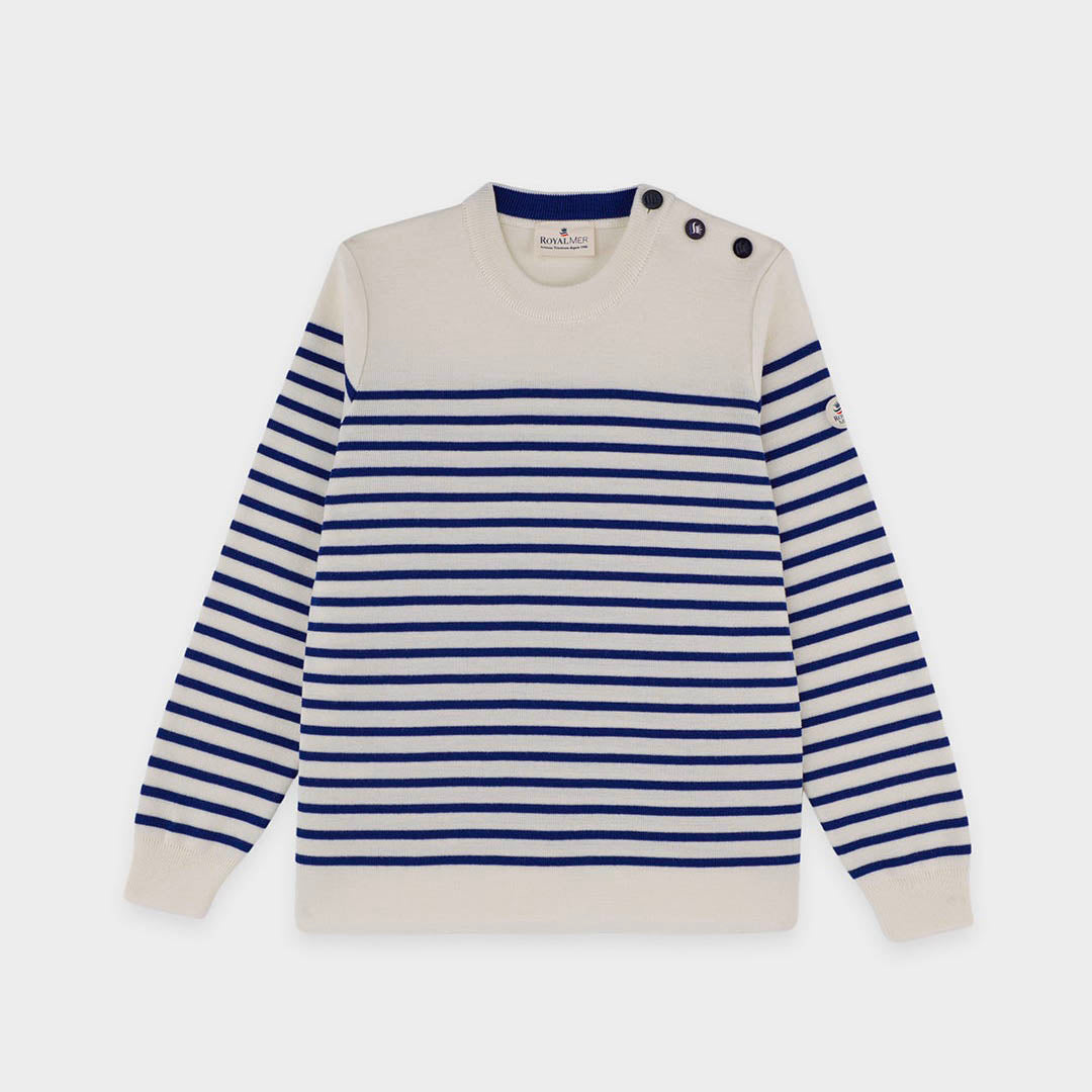 Pull marin rayé bouton mats