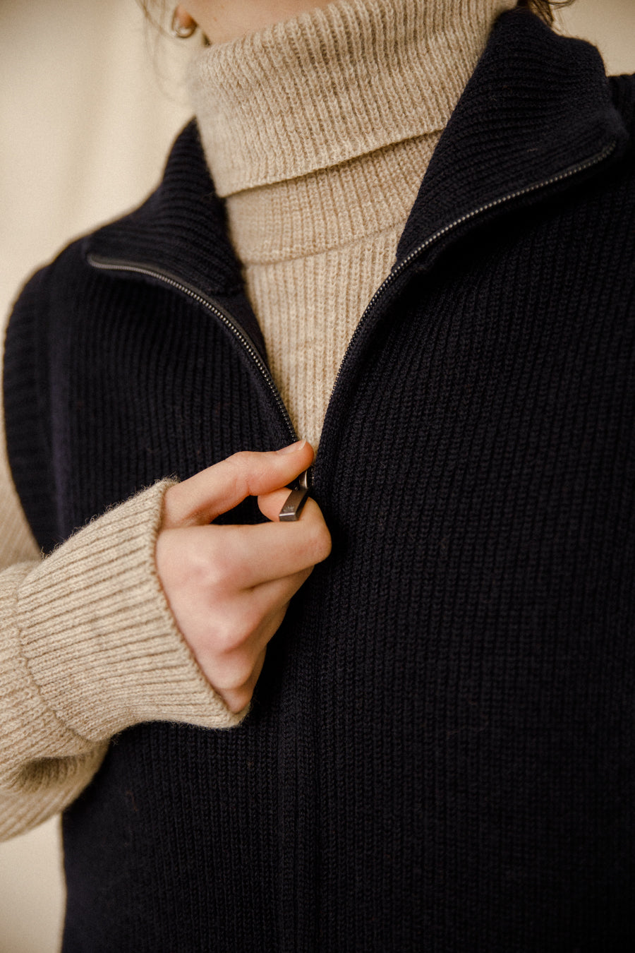 Ce modèle présente un col montant qui non seulement ajoute une touche de sophistication, mais procure également une protection contre le froid. Sa coupe ajustée permet une silhouette élégante tout en facilitant les superpositions, idéal pour les saisons intermédiaires.