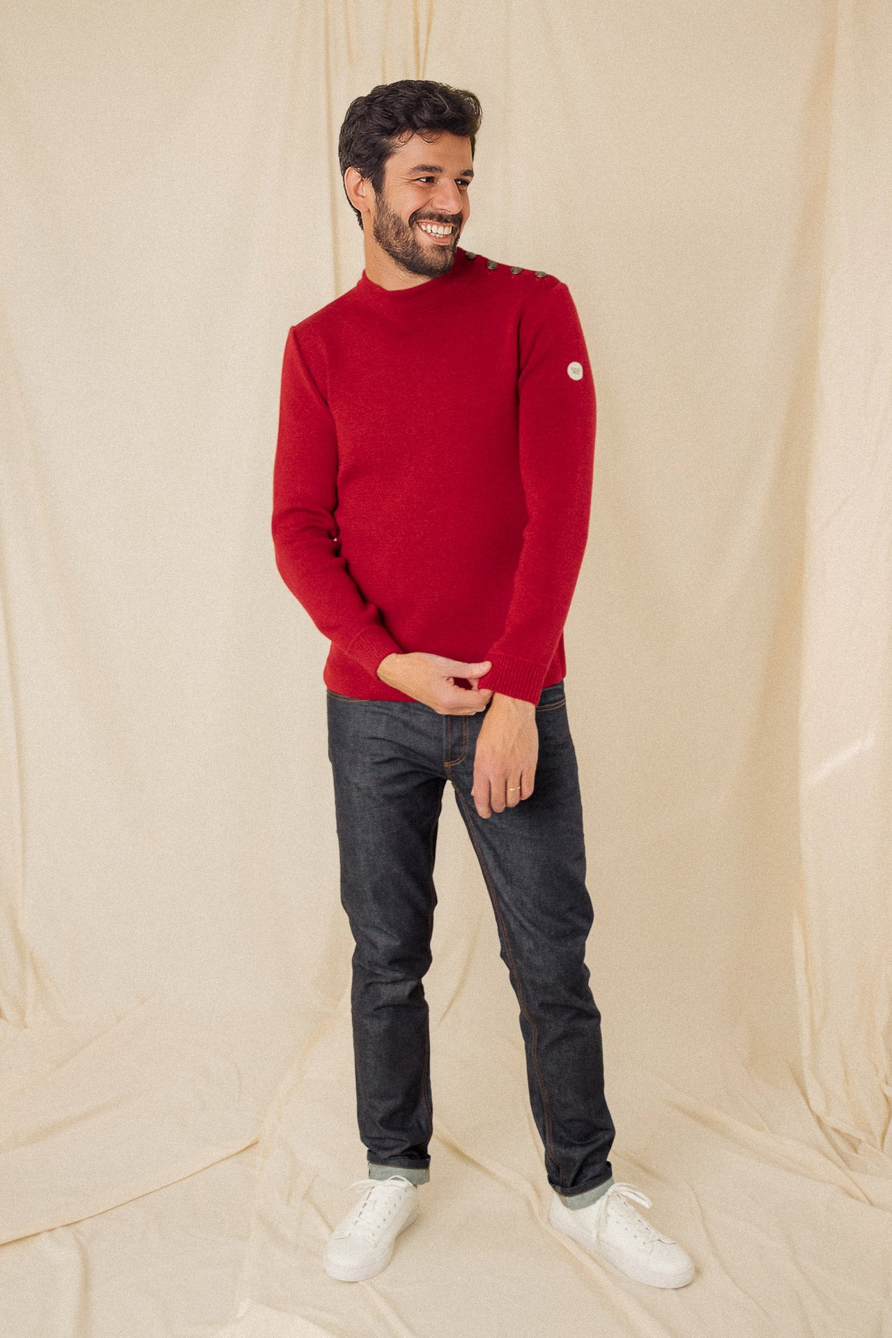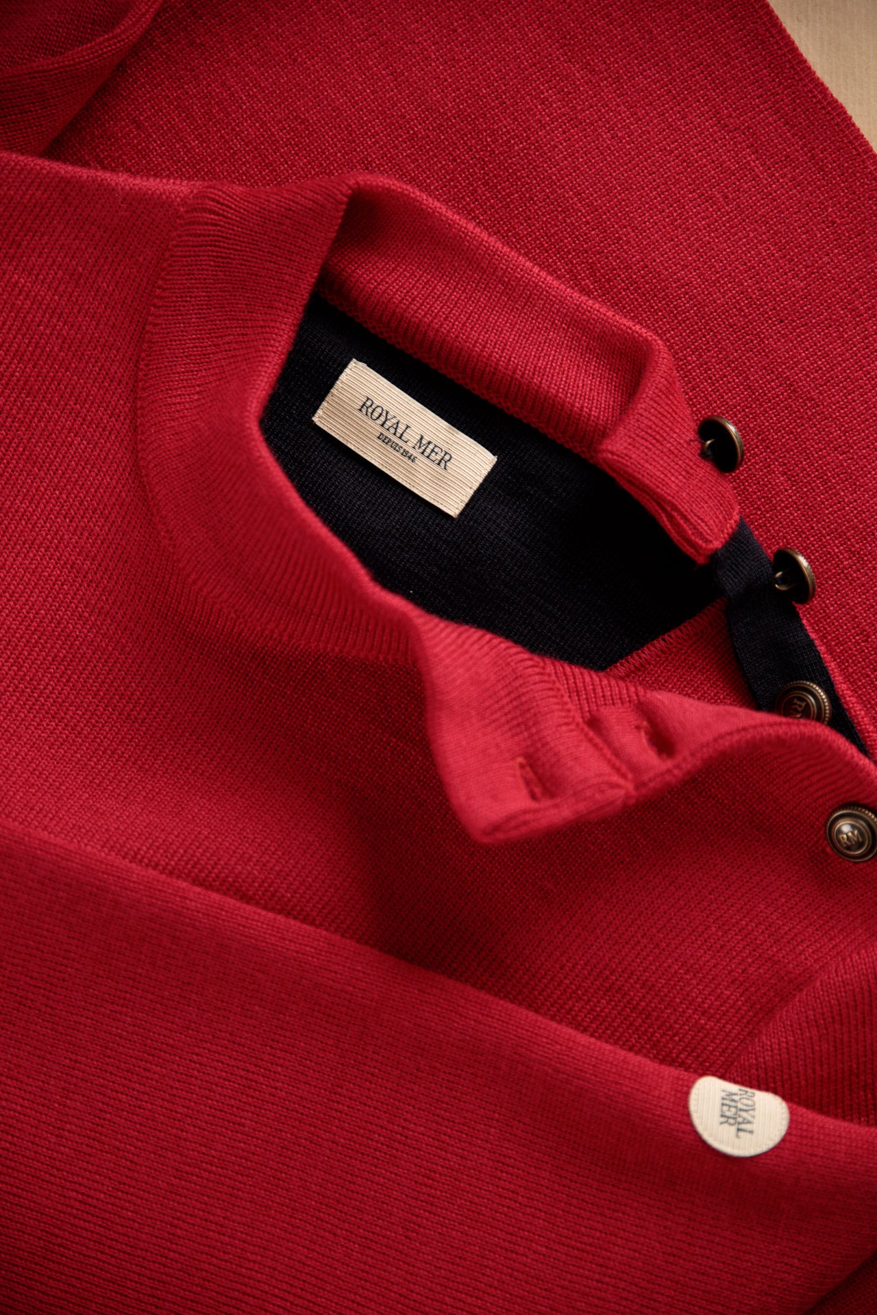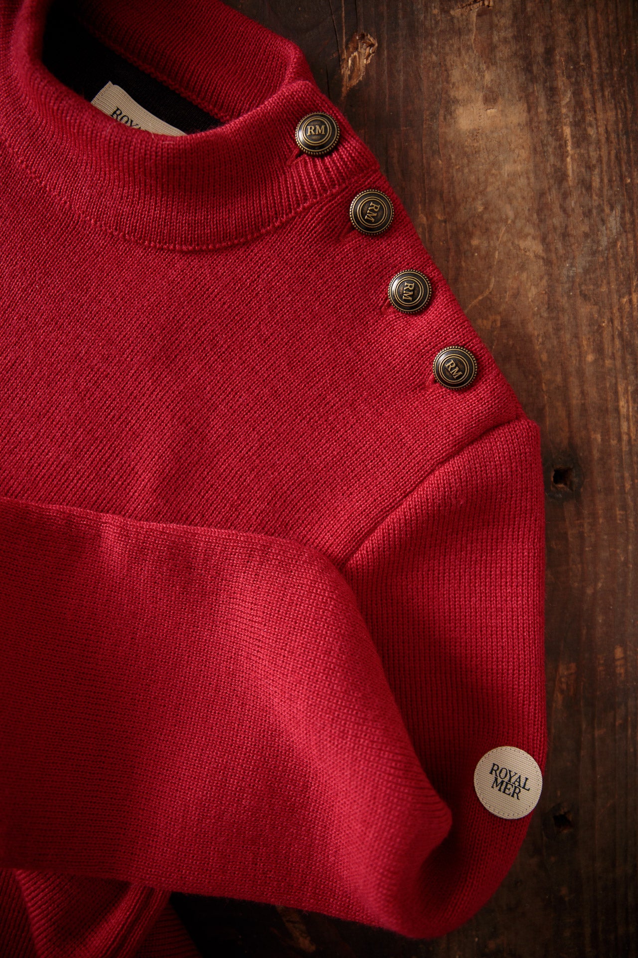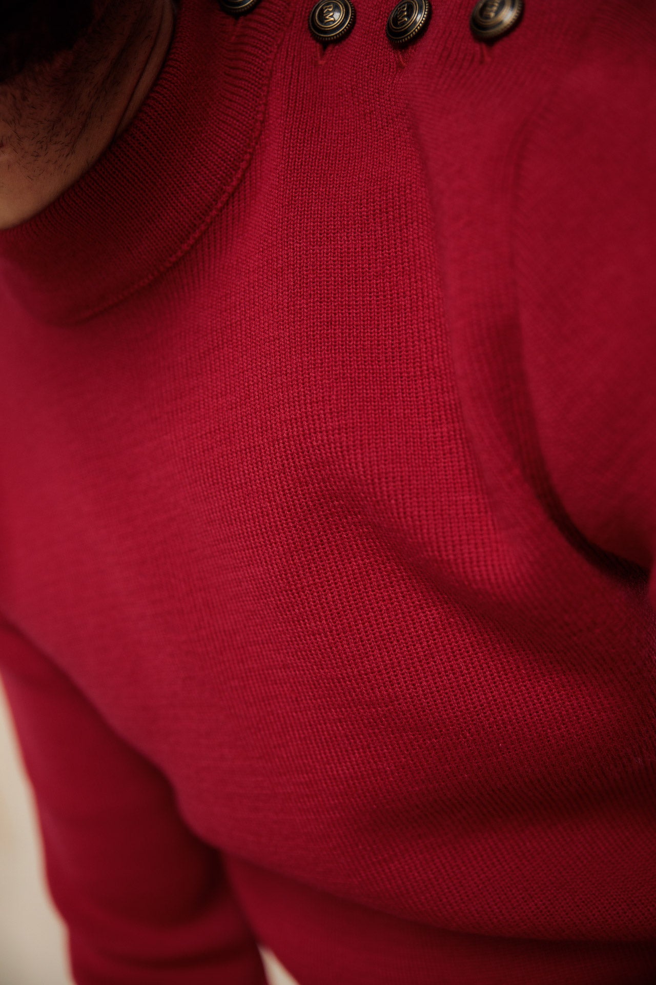 Sa teinte rouge uni apporte une touche vive et attrayante à votre garde-robe. Avec sa coupe ajustée et son col marin, il allie élégance et modernité. Le pull est également doté d'un boutonnage décoratif sur l'épaule gauche, avec des boutons en bronze qui ajoutent une note distinctive à son design.