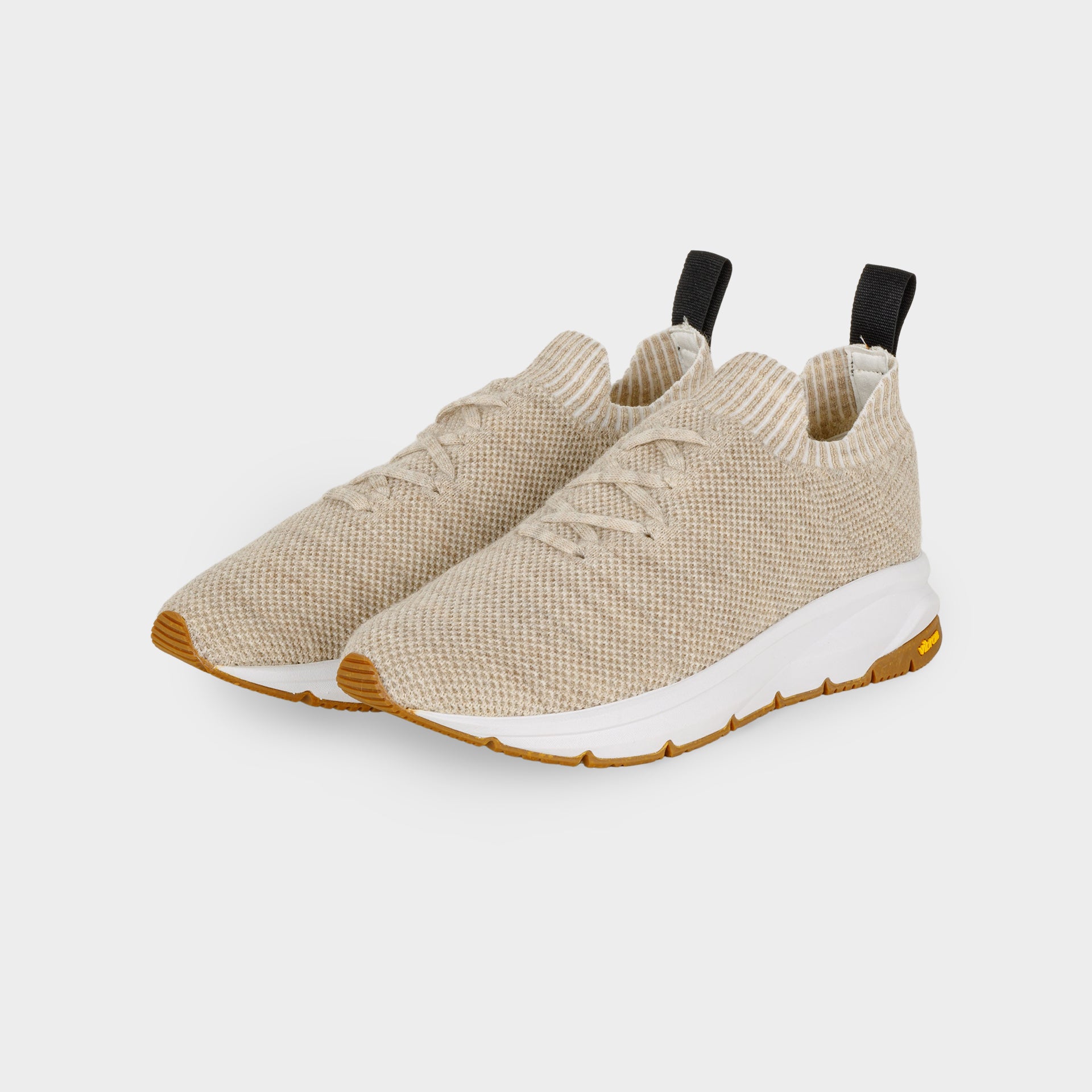 Ces sneakers mixtes se déclinent dans une teinte beige clair, une couleur neutre et polyvalente qui s'harmonise facilement avec diverses tenues. La semelle, de couleur blanche, est dotée d'une légère texture et d'un renfort en caoutchouc caramel, garantissant une excellente adhérence sur toutes les surfaces.