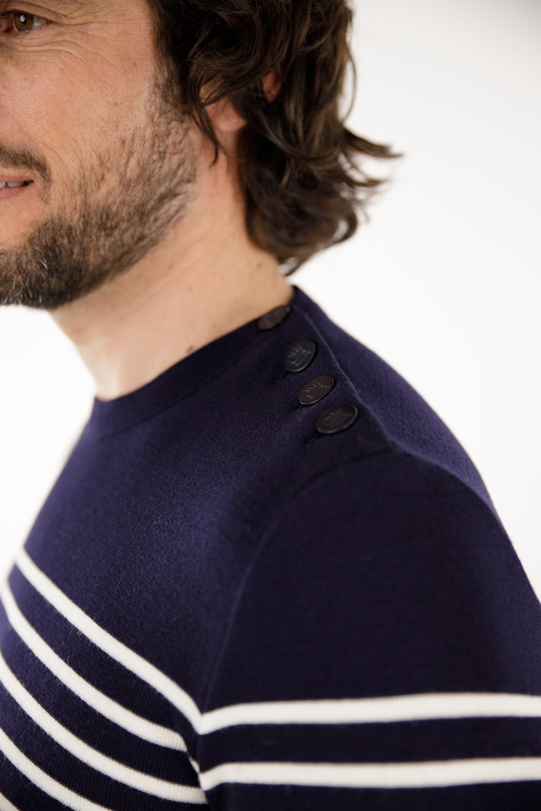 Craquez pour le pull Klasel en version uni ! Ce pull marin de de qualité emblématique de la marque Royal Mer propose une ligne modernisée avec sa coupe droite et plus ajustée. Sa texture douce est composée à 100% de pure laine mérinos.