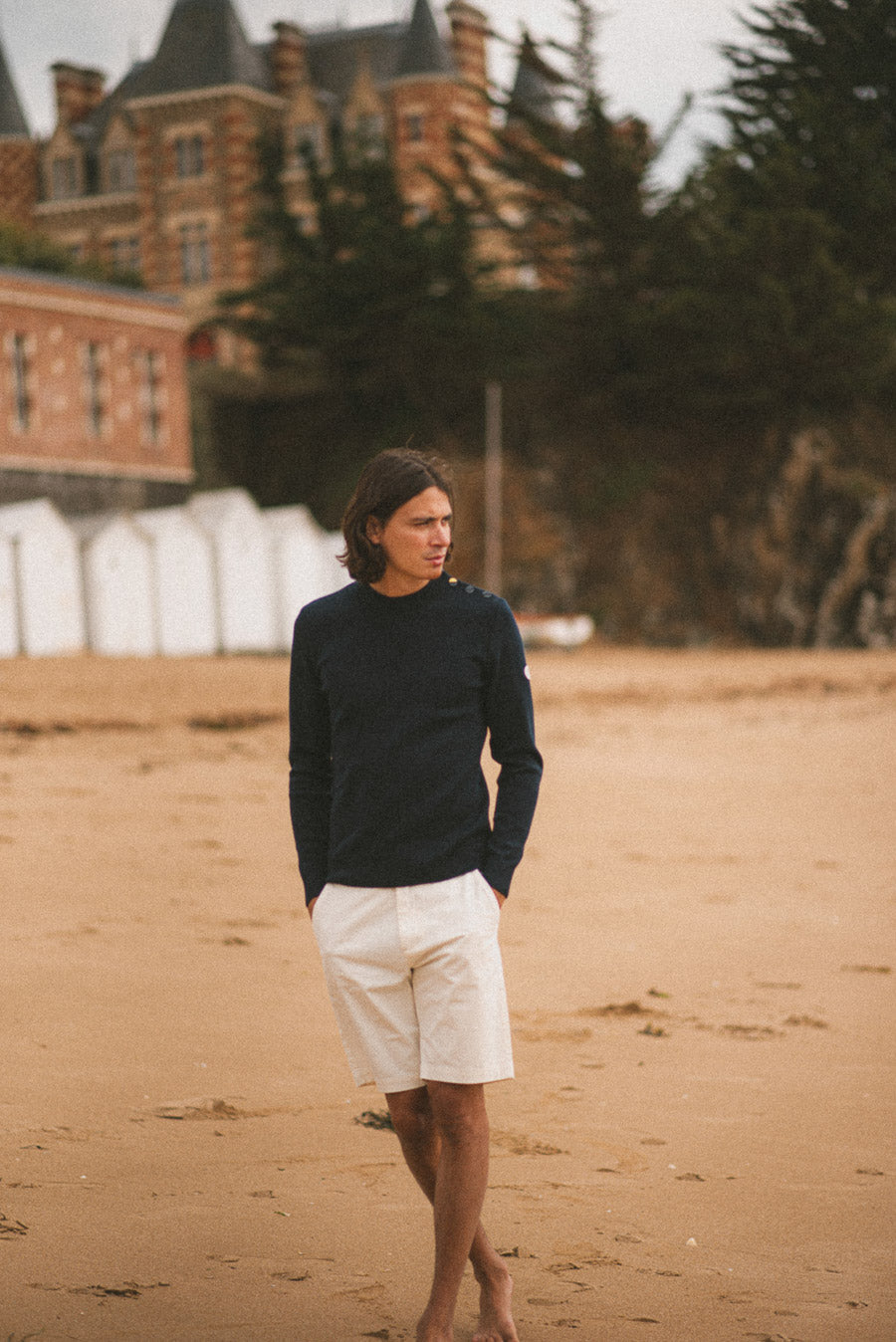Le pull marin uni Klasel est un incontournable pour les amateurs de mode inspirée de l'univers maritime. Ce pull se distingue par ses coudières ornées de motifs d'ancres, ajoutant une touche originale à un vêtement classique.