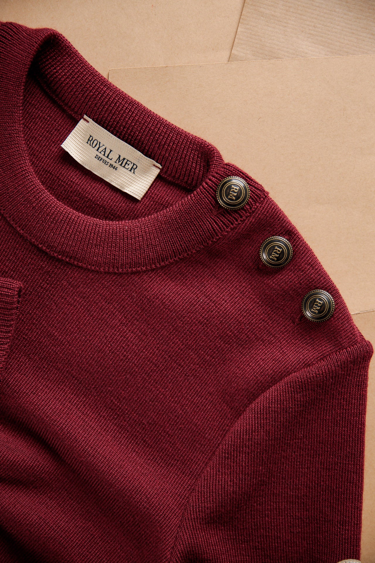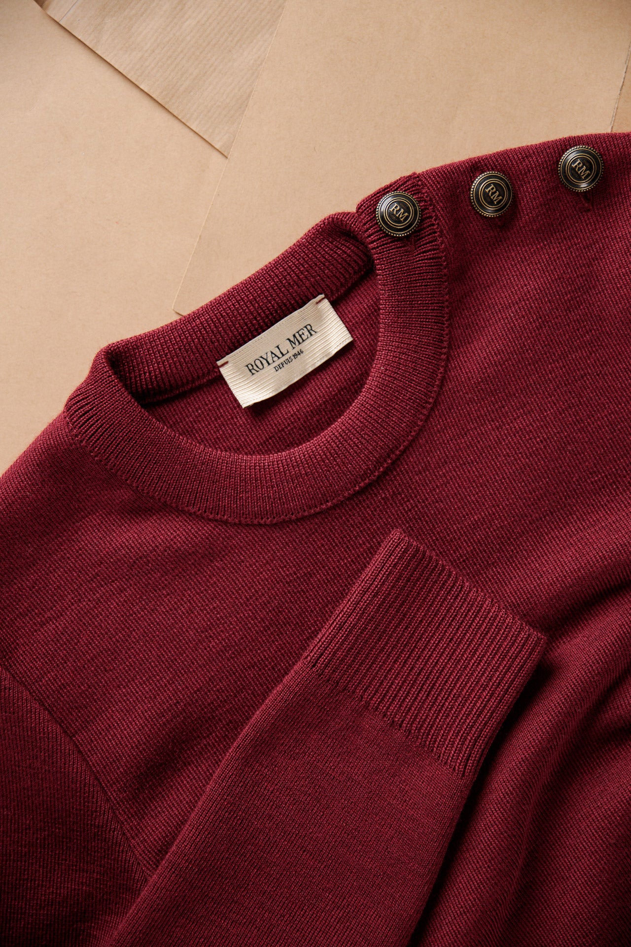 Plain marl burgundy sailor sweater in fine RWS merino wool