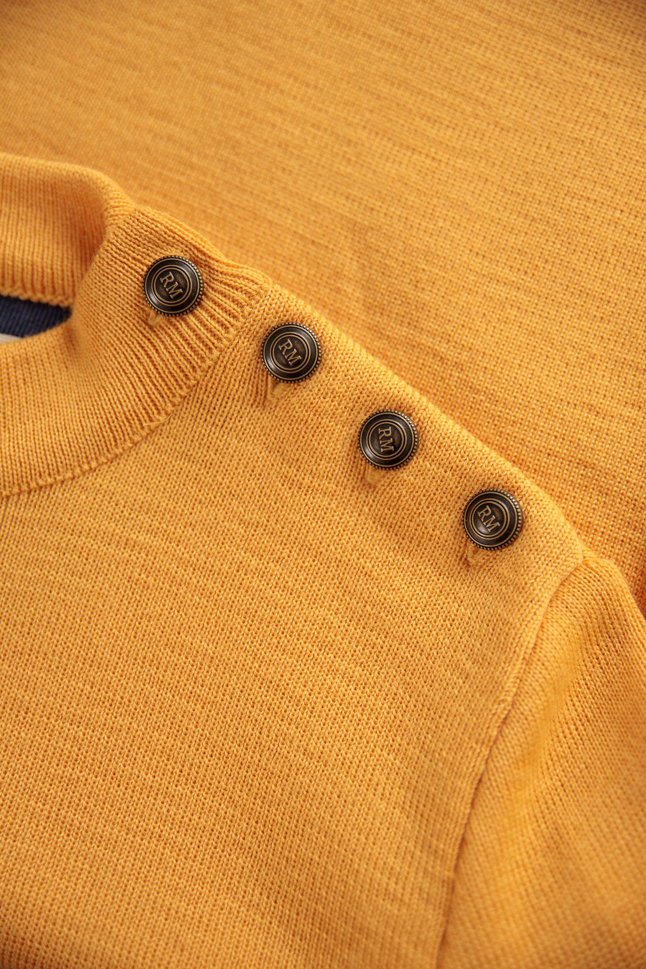 This sweater stands out thanks to its refined details , notably the button placket on the left shoulder with bronze buttons, evoking a chic nautical style. The brand's logo is subtly placed on the arm, asserting its identity without ostentation.