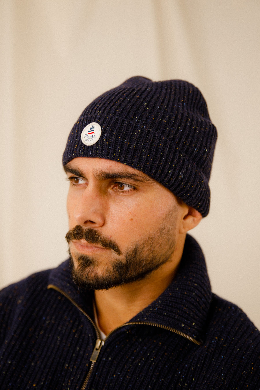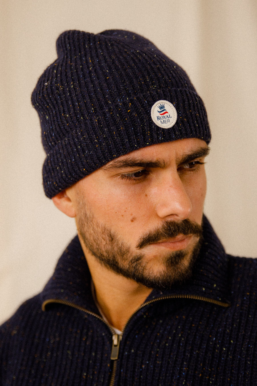 Le bonnet Maloe de la marque Royal Mer est un accessoire incontournable pour affronter les saisons fraîches avec style. Confectionné en laine éco tweed bleu marine, ce bonnet allie confort et élégance grâce à sa texture douce et chaude.
