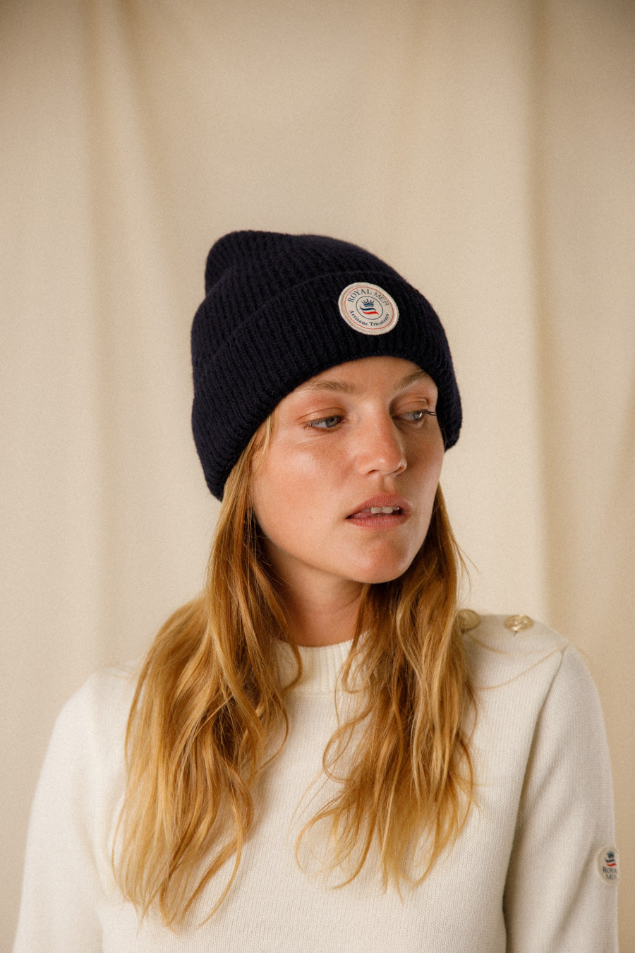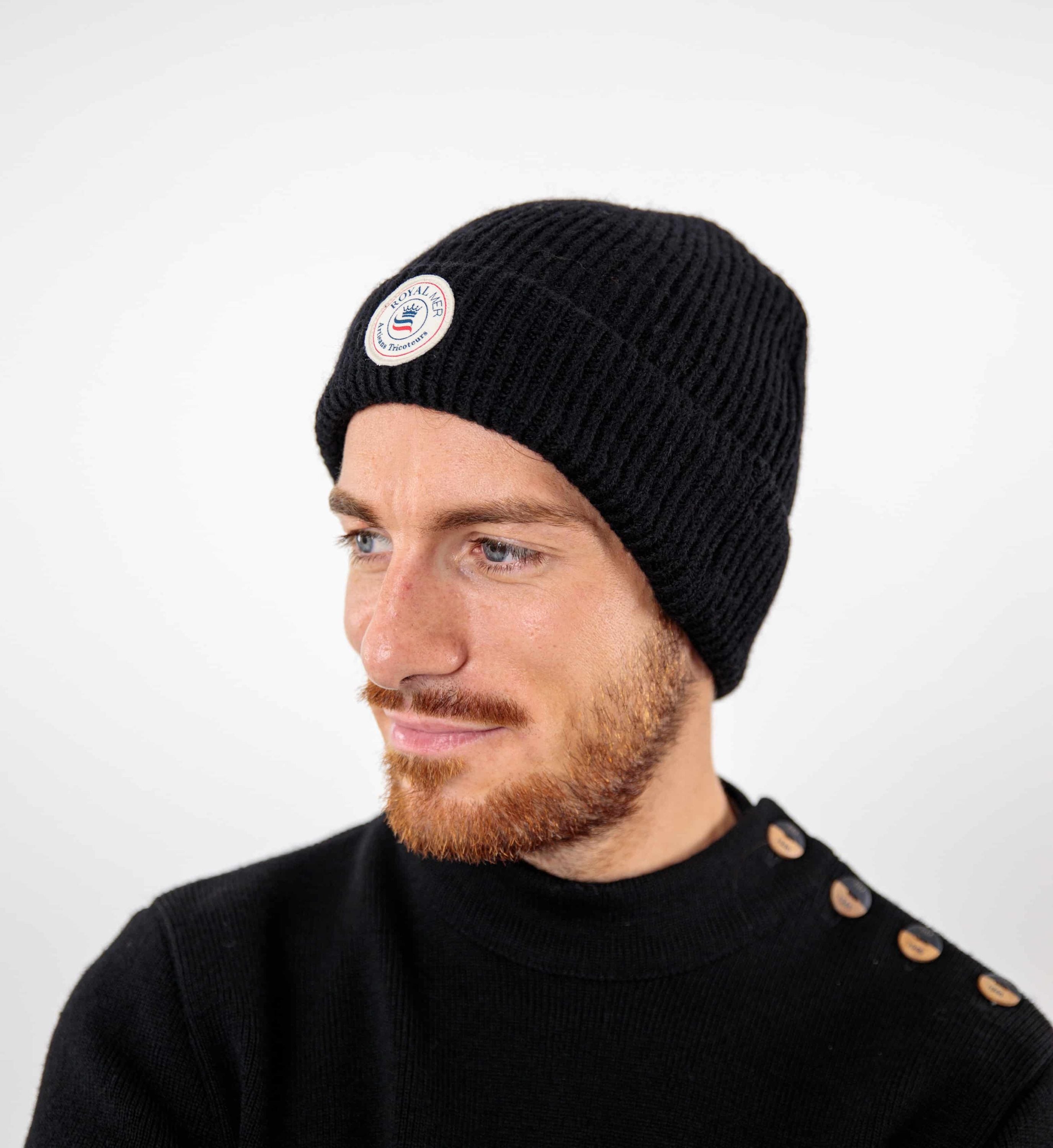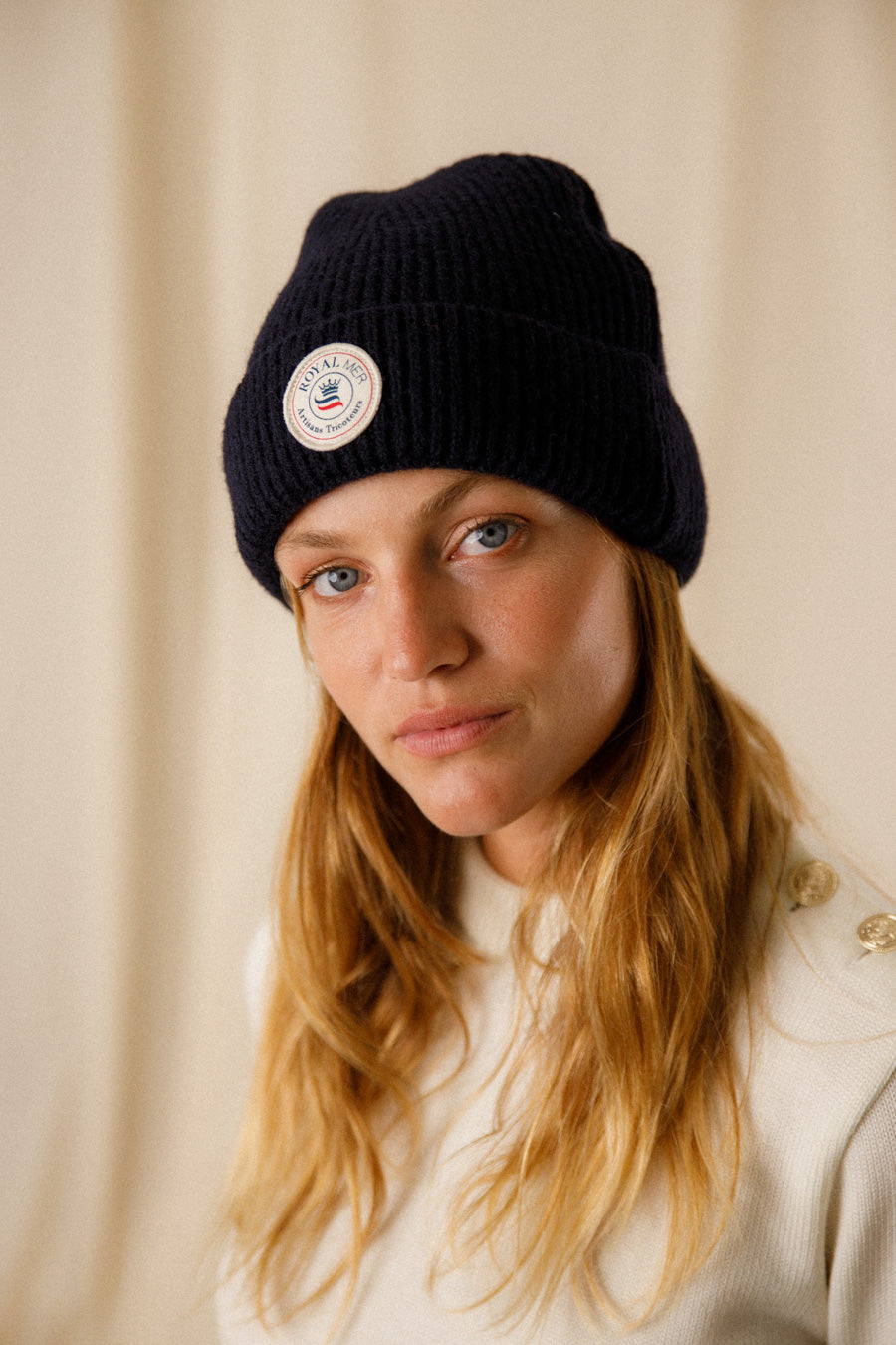 Ce bonnet est disponible en noir, une couleur intemporelle qui s'associe aisément avec toutes vos tenues, et en bleu marine, une alternative chic qui apporte une nuance subtile. Sa texture douce et confortable, grâce à son tissu tricoté, en fait un choix idéal pour les saisons froides.