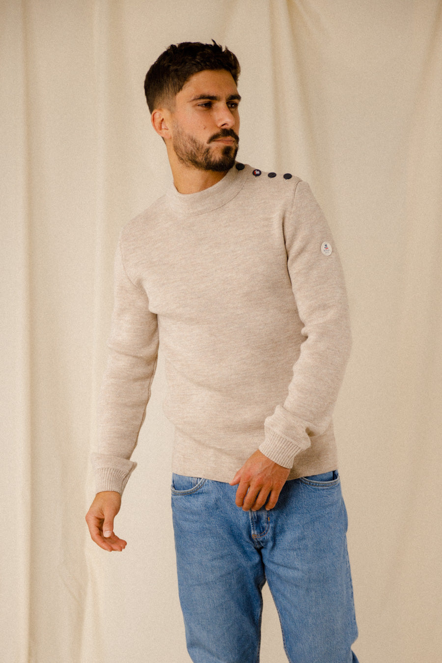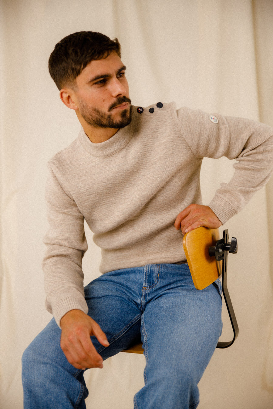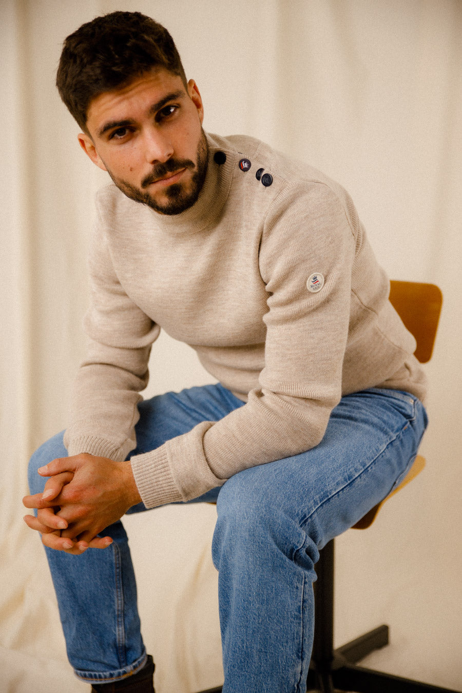 Le pull marin uni Adrian est un vêtement pour homme qui allie confort et élégance. Confectionné en 100% laine vierge, ce pull beige se distingue par sa qualité supérieure et sa douceur au toucher, parfait pour vous garder au chaud lors des journées fraîches.