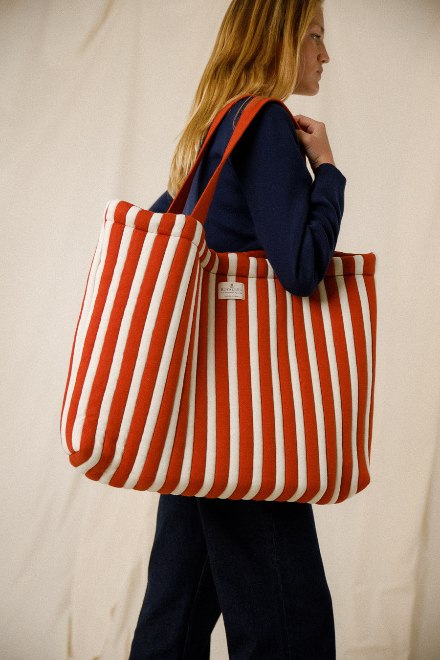 Avec des dimensions généreuses de 56 cm de largeur et 48 cm de hauteur, ce cabas est idéal pour transporter vos essentiels au quotidien, que ce soit pour une journée à la plage, une sortie shopping ou un pique-nique. Son design spacieux et ses anses larges et confortables permettent un port à l'épaule ou à la main, offrant ainsi une grande flexibilité d'utilisation.