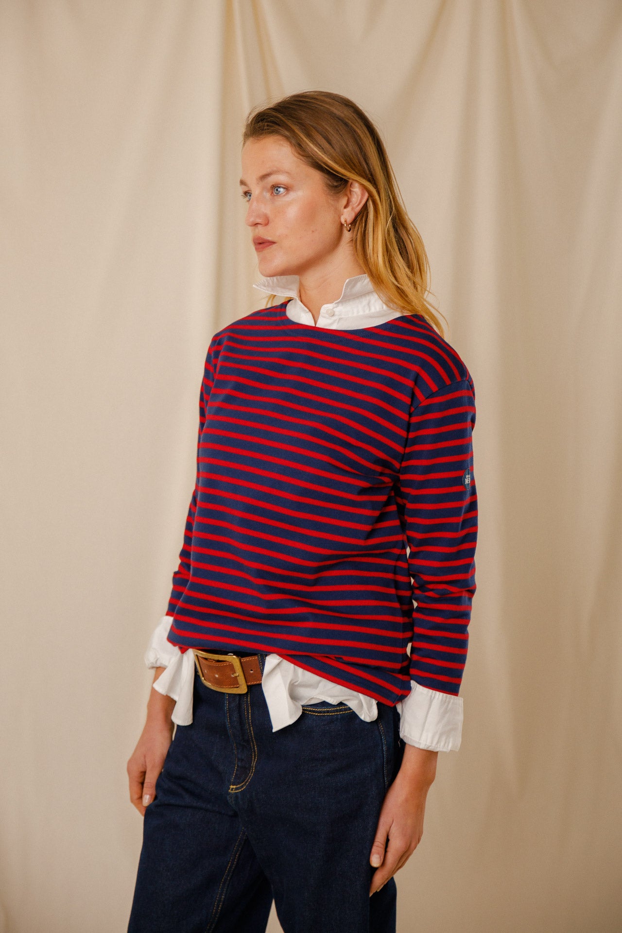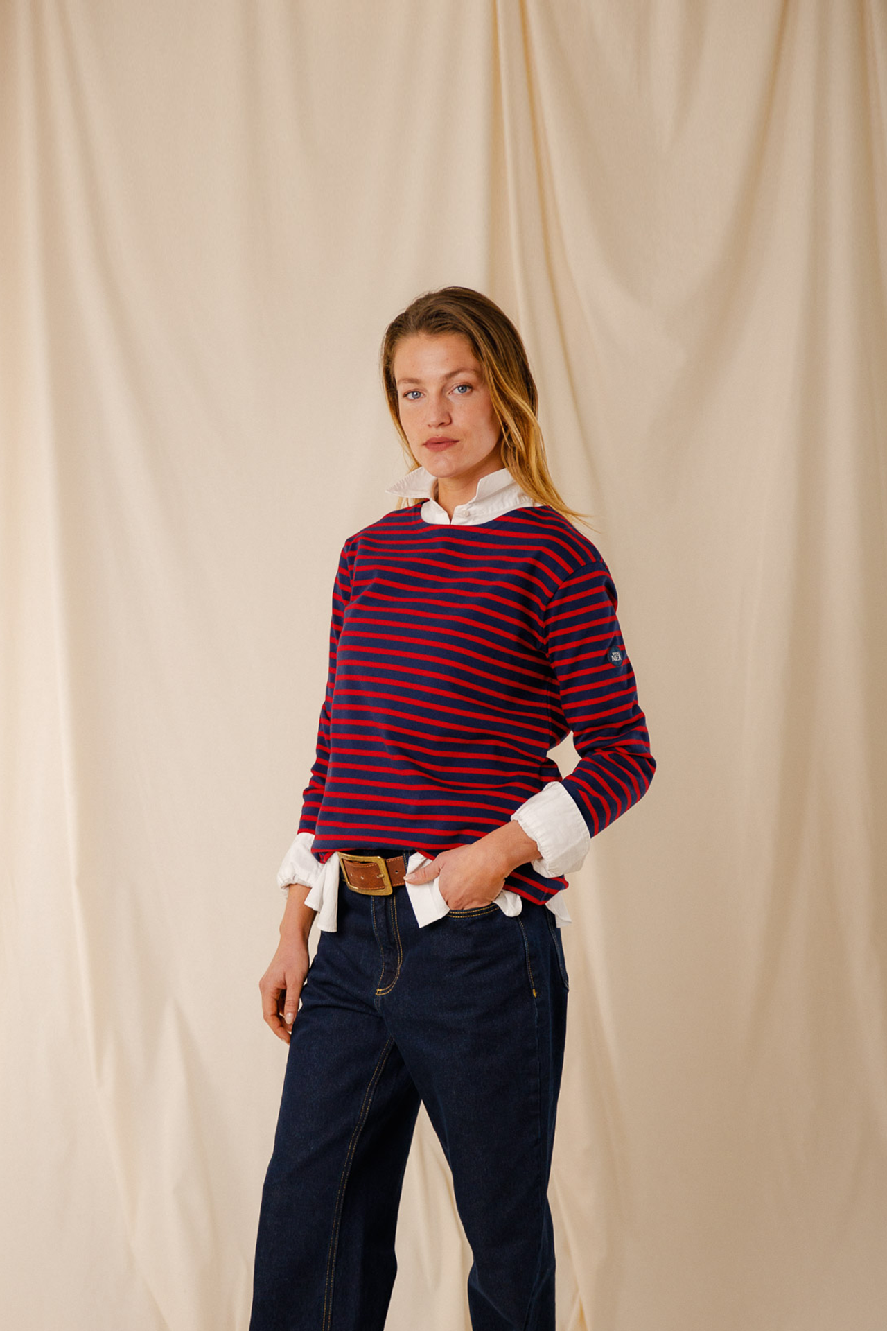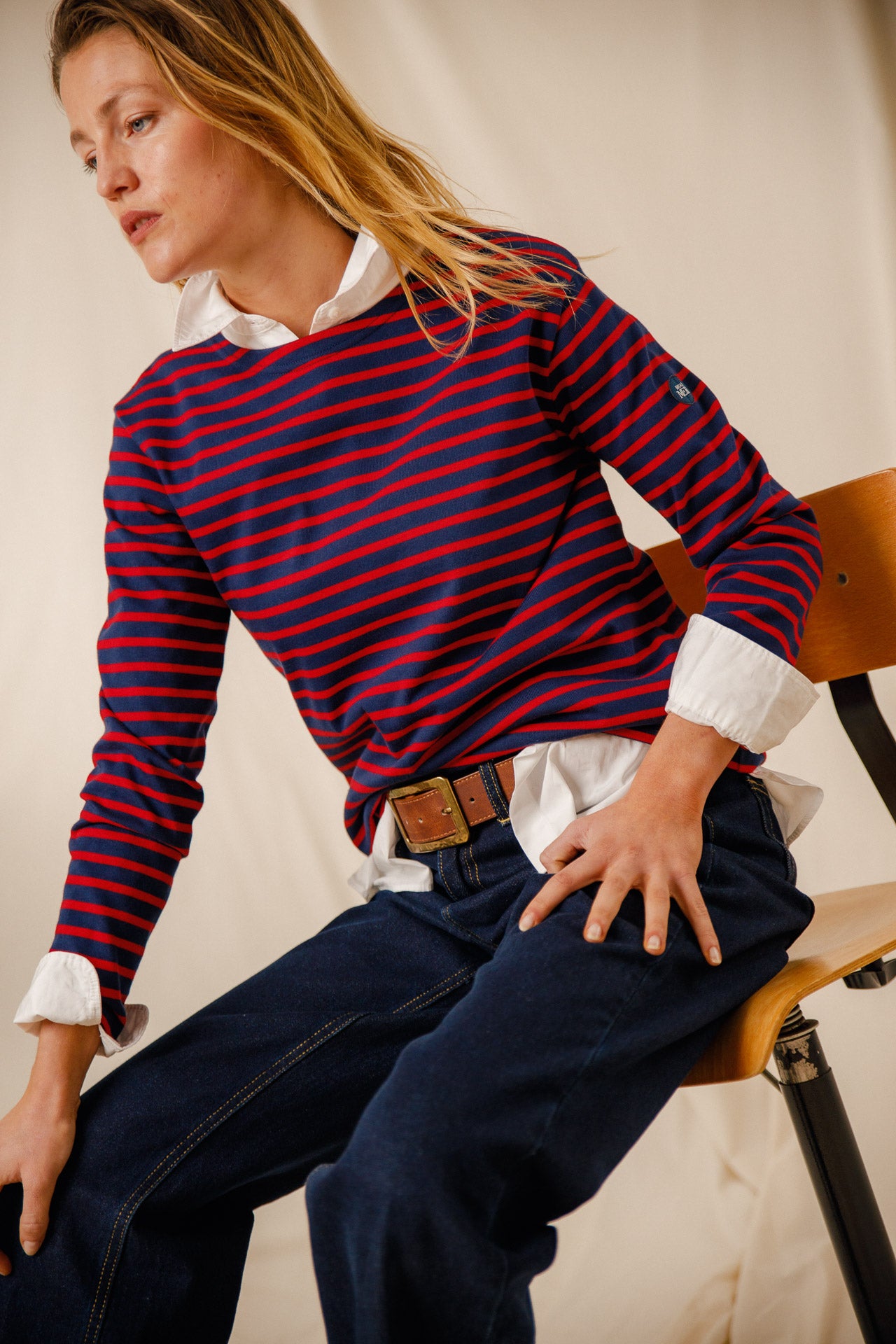Laissez-vous tenter par Bleizen ML l’indémodable marinière à manches longues en coton peigné. Son style intemporel chic saura vous séduire pour un look moderne allié à un t-shirt durable, authentique et de qualité.