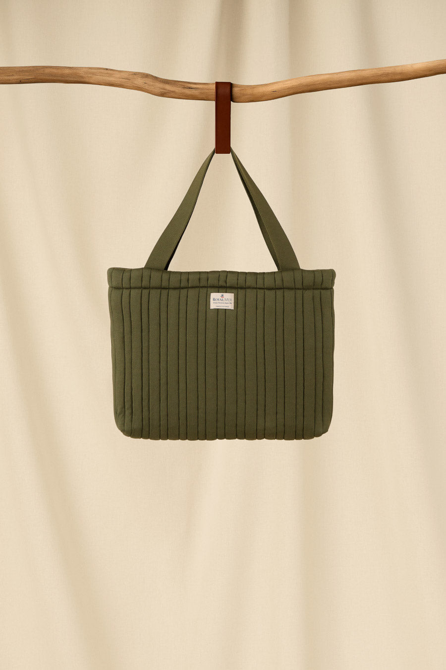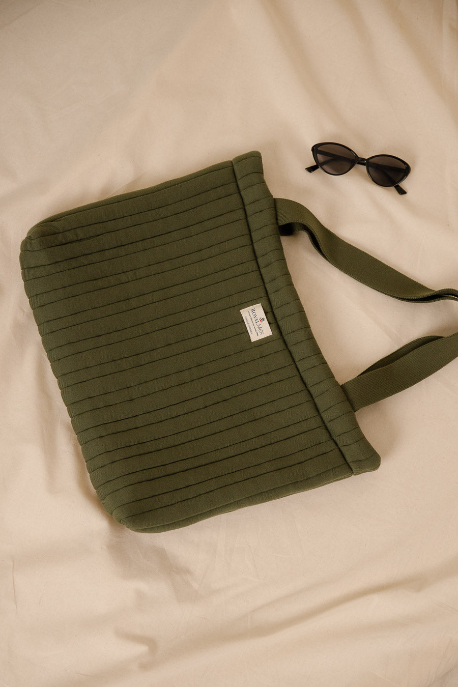Le cabas rayé Gaby est un accessoire incontournable pour ceux qui recherchent à la fois style et praticité. Confectionné en 100% coton, ce sac arbore un motif de rayures verticales kaki qui lui confère une allure moderne et élégante.