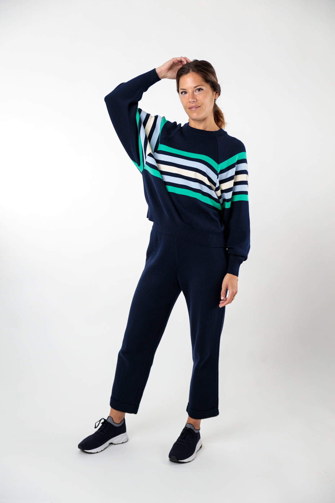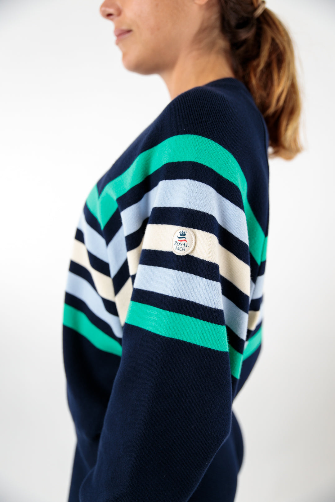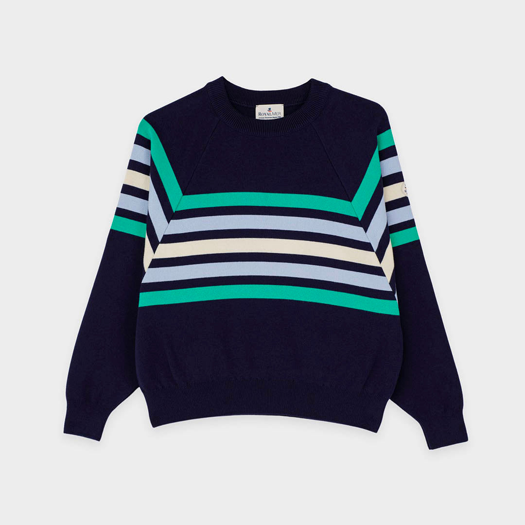 Pull ample rayé marine/écru en coton égyptien