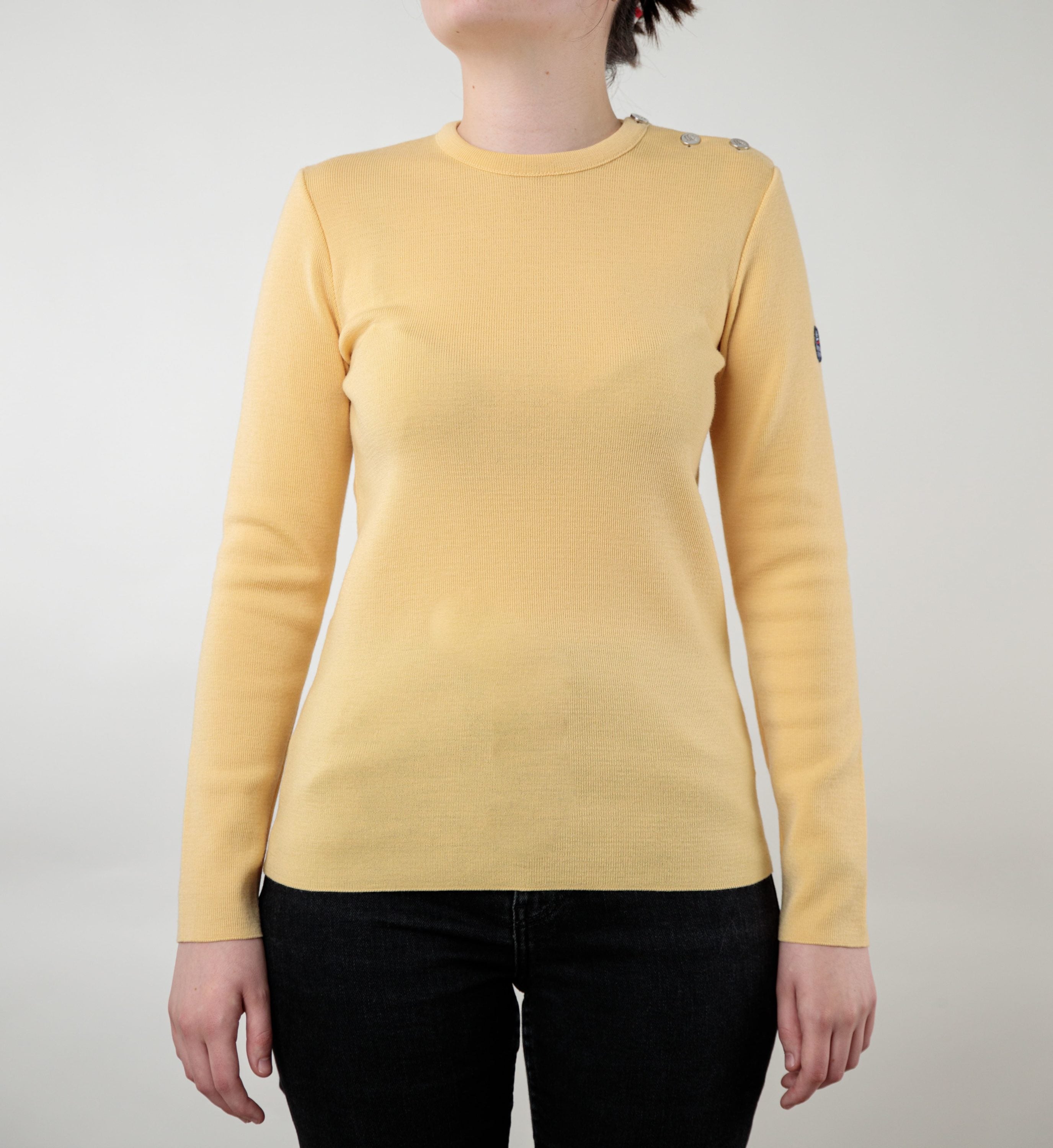 Craquez pour le pull Klasel jaune limoncello ! Ce pull marin emblématique made in France 100% laine mérinos propose une ligne moderne.