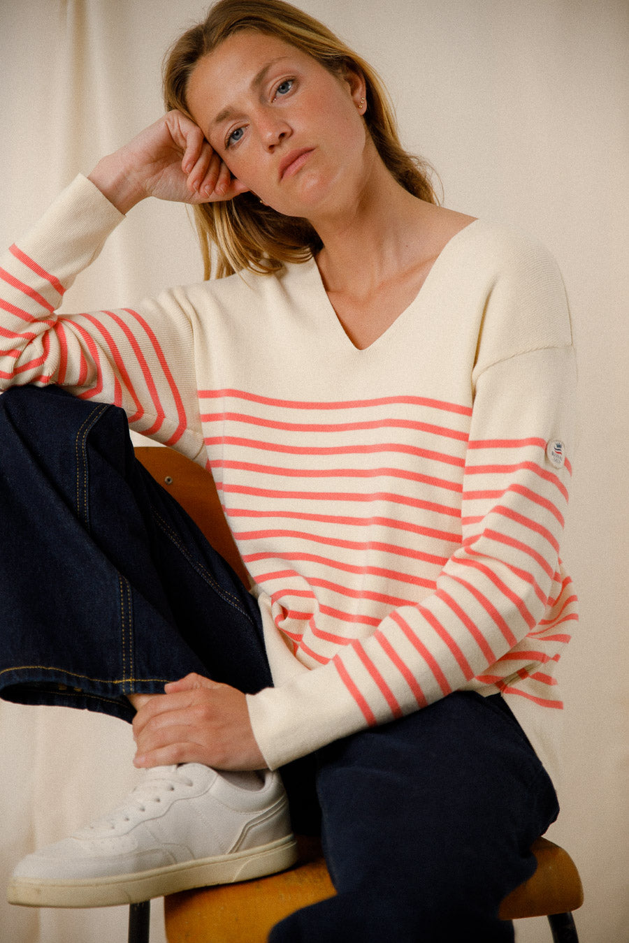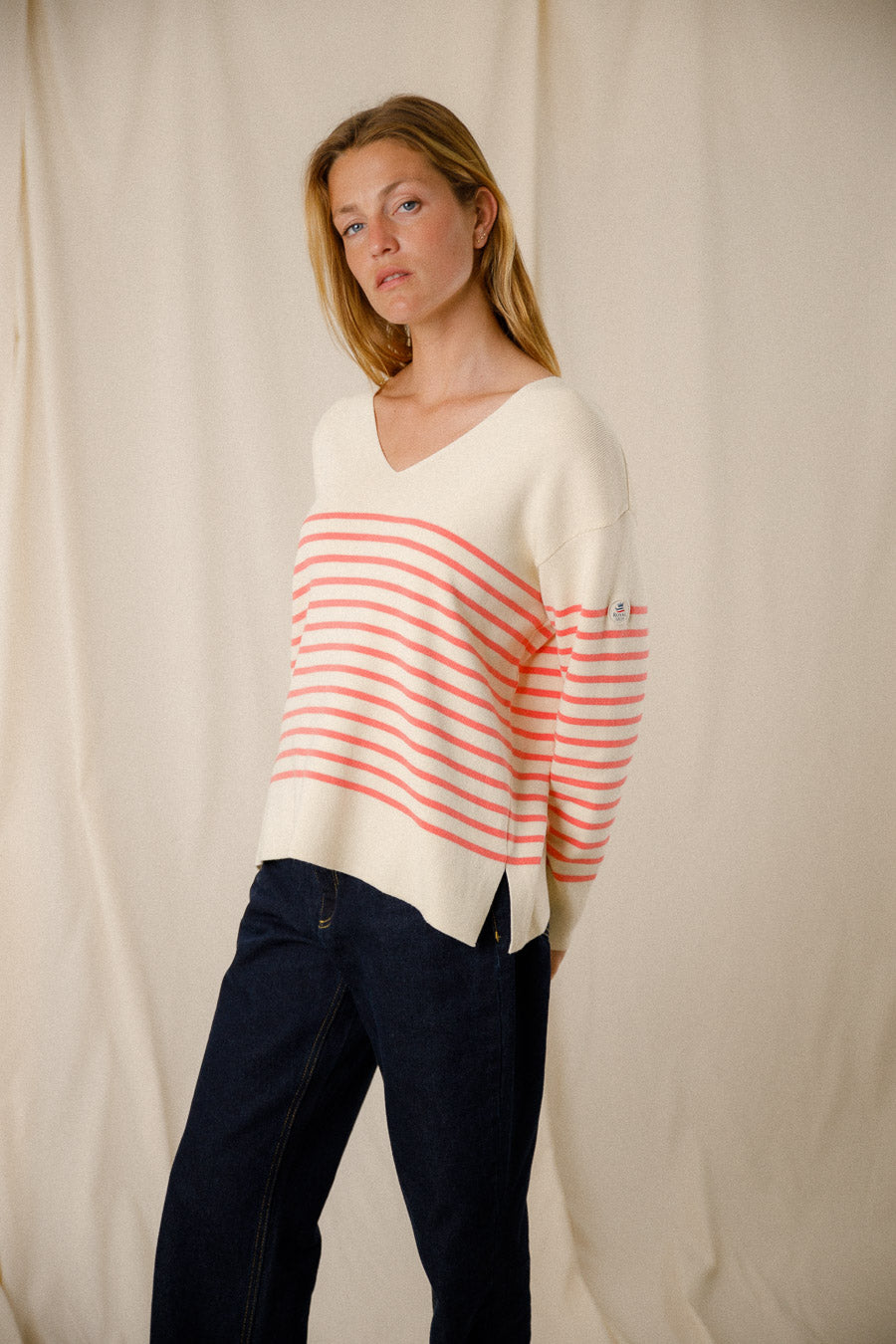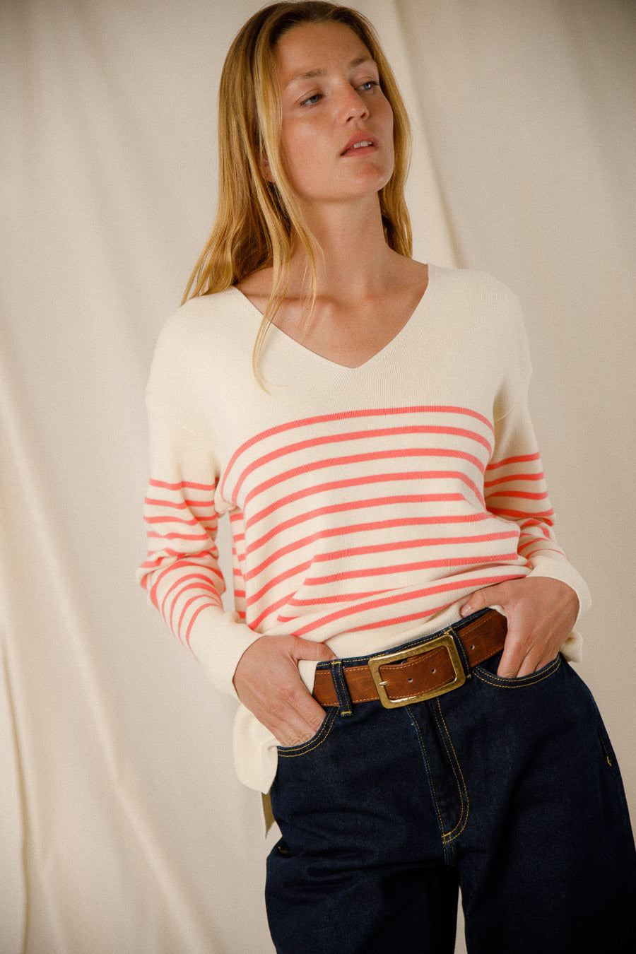 Découvrez notre pull rayé bicolore Capucine avec col V en craie et néon, fait de 100% coton égyptien. Profitez d'une qualité exceptionnelle et d'un style intemporel grâce à sa composition haut de gamme. Restez élégant et confortable en toute occasion avec ce pull unique.