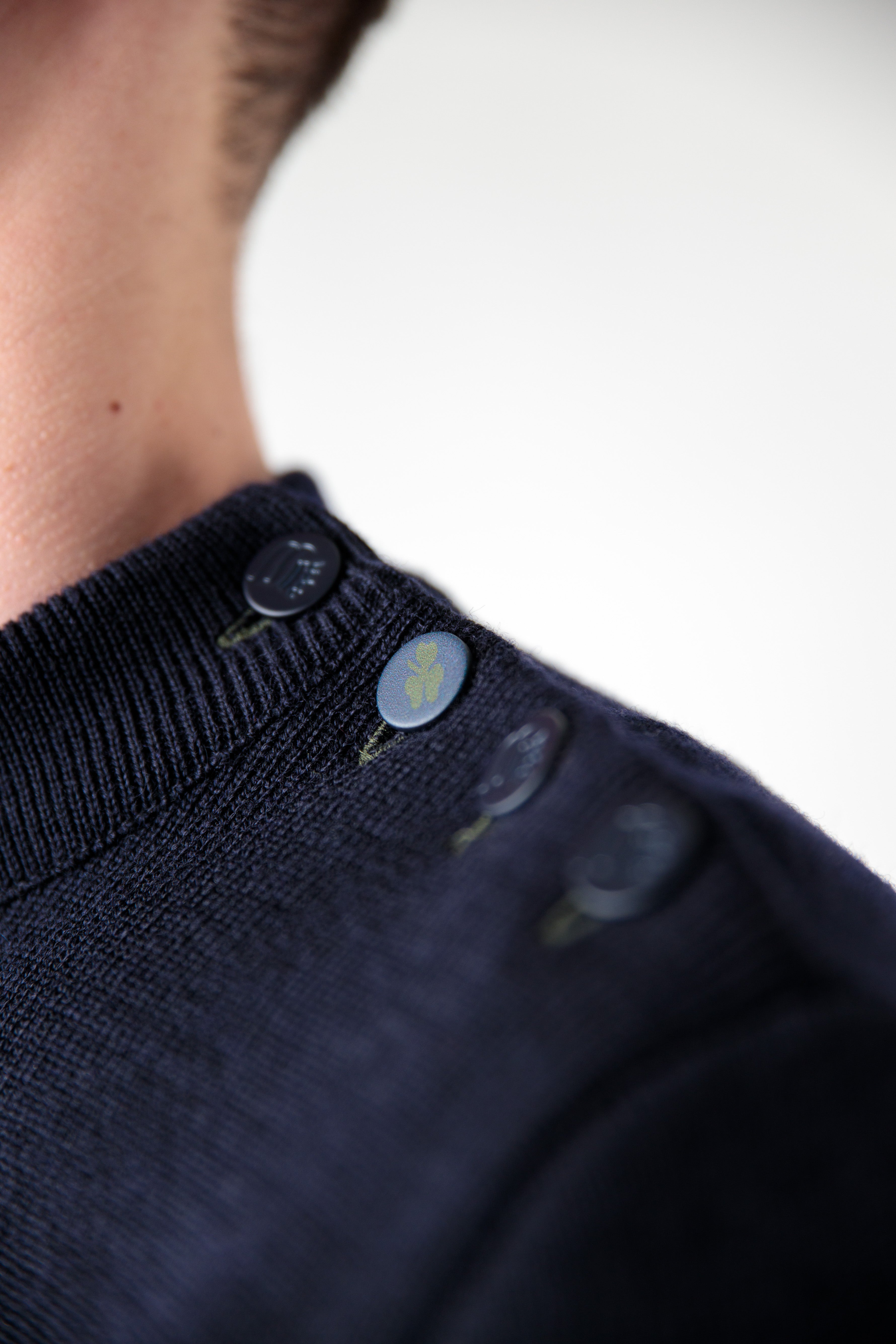 - Boutonnage épaule gauche avec un bouton trèfle signature du Comptoir Irlandais