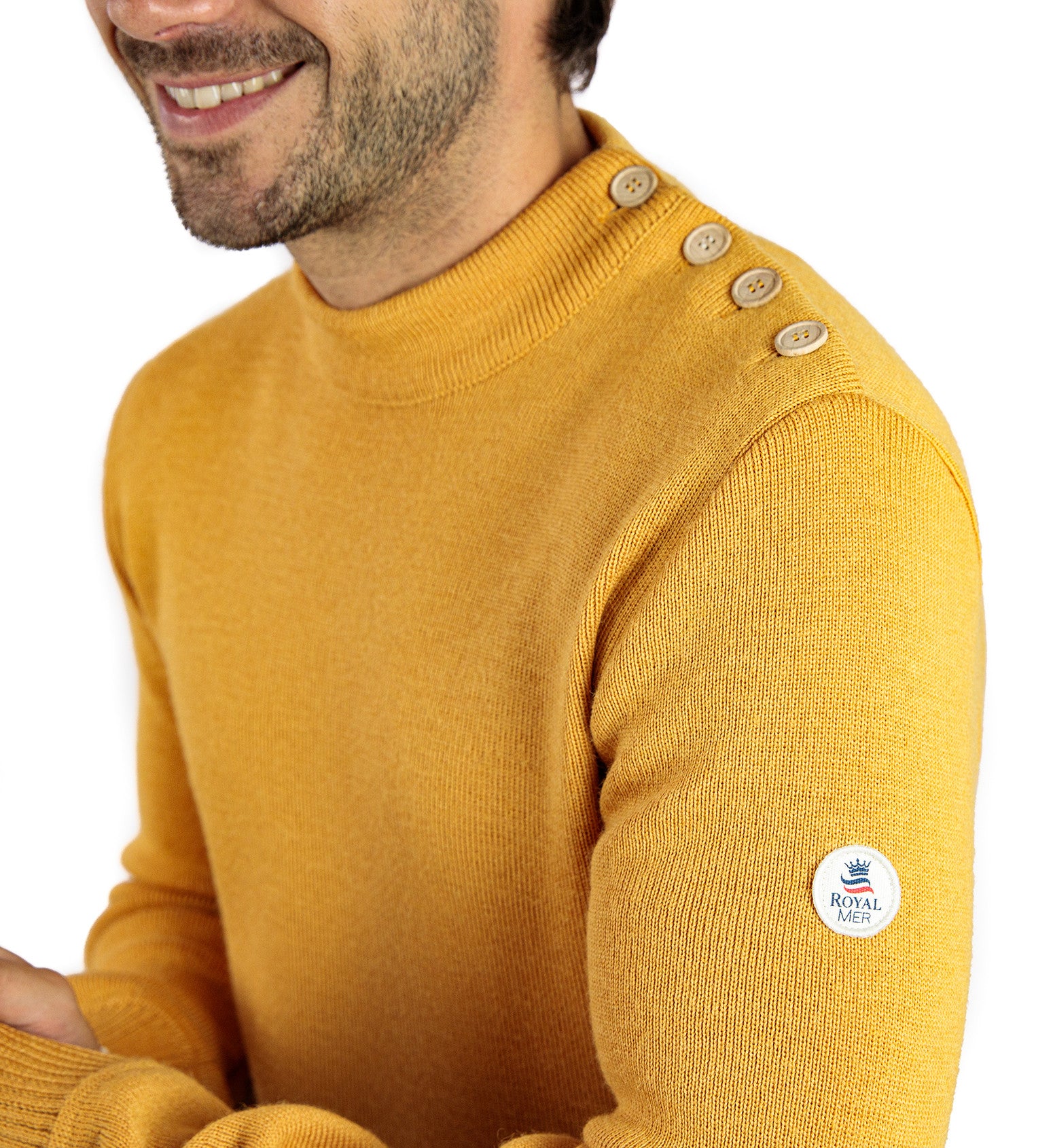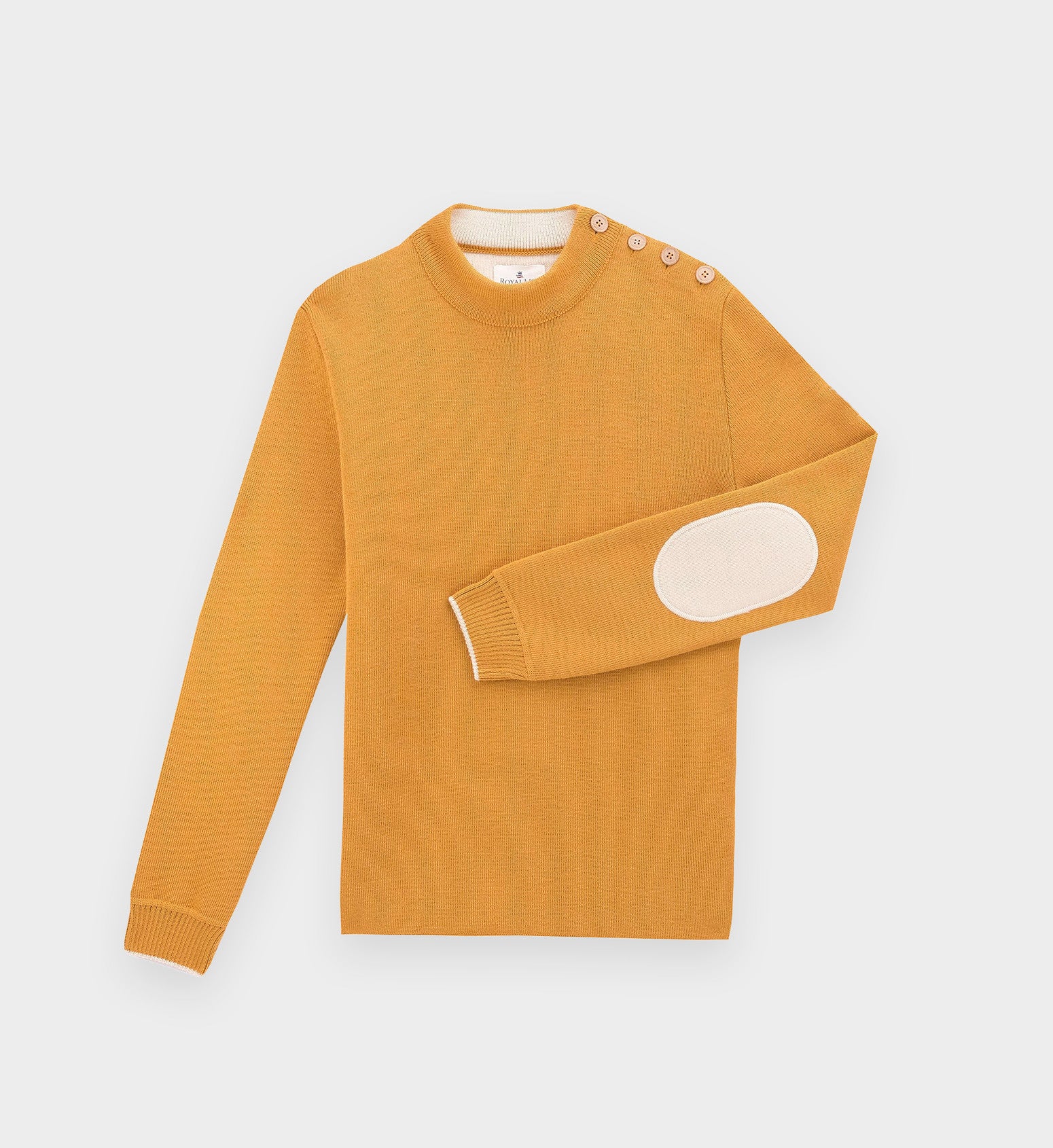 Notre pull Bertrand est une revisite du pull marin. Ses coudières contrastées et ses boutons en bois dynamiseront votre look. Le pull Bertrand est fabriqué en France dans notre atelier à la Regrippière (44).