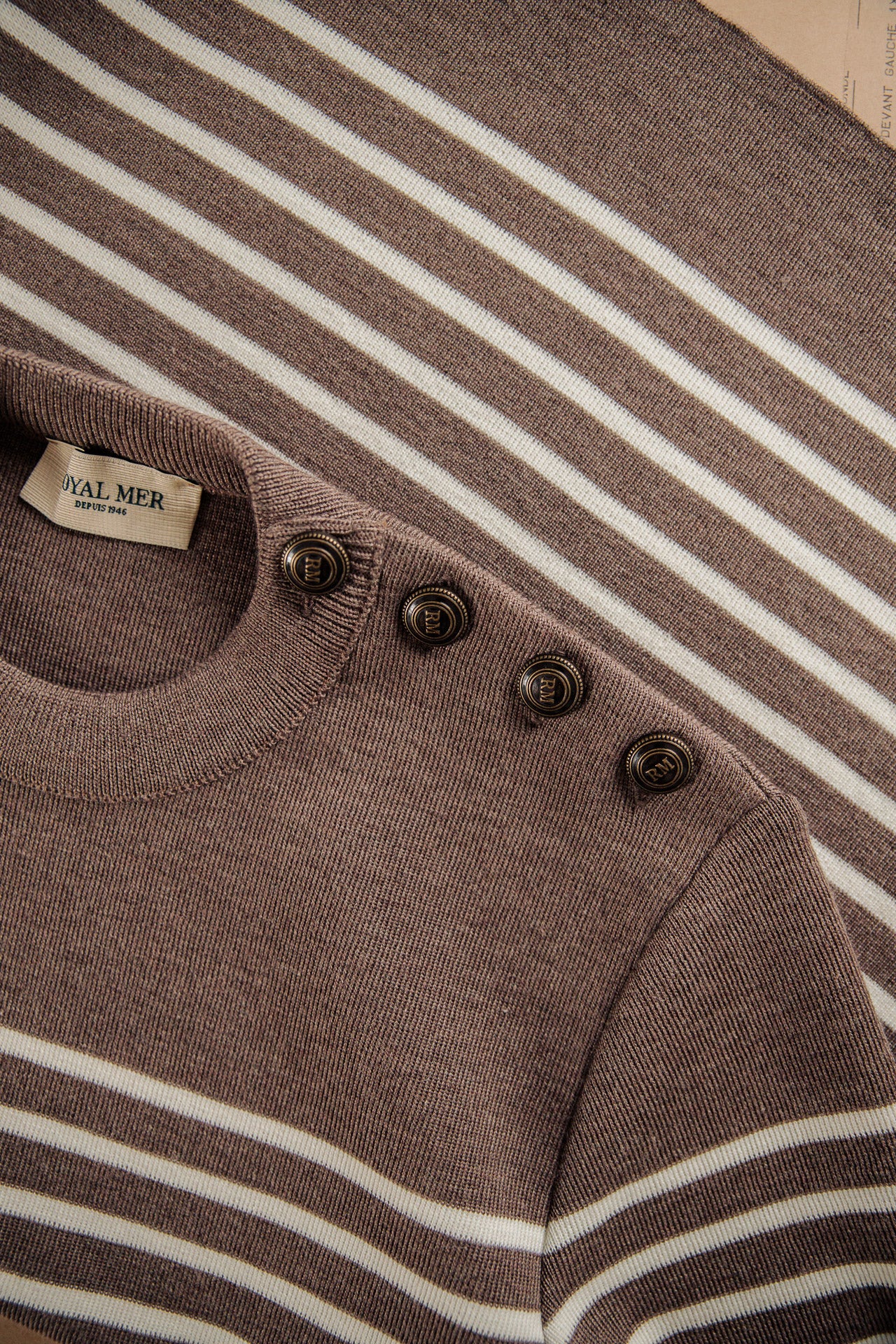 Pull marin rayé marine/écru en laine mérinos fine RWS