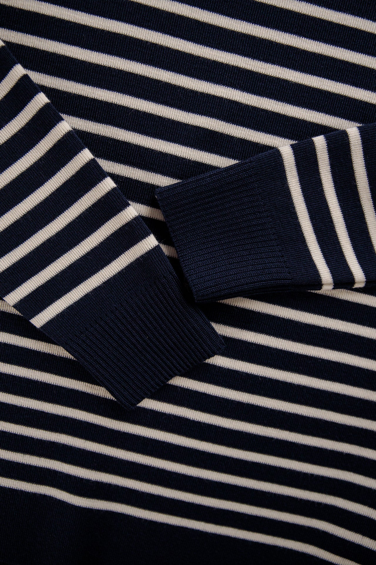 Pull marin rayé marron clair chiné/écru en laine mérinos fine RWS