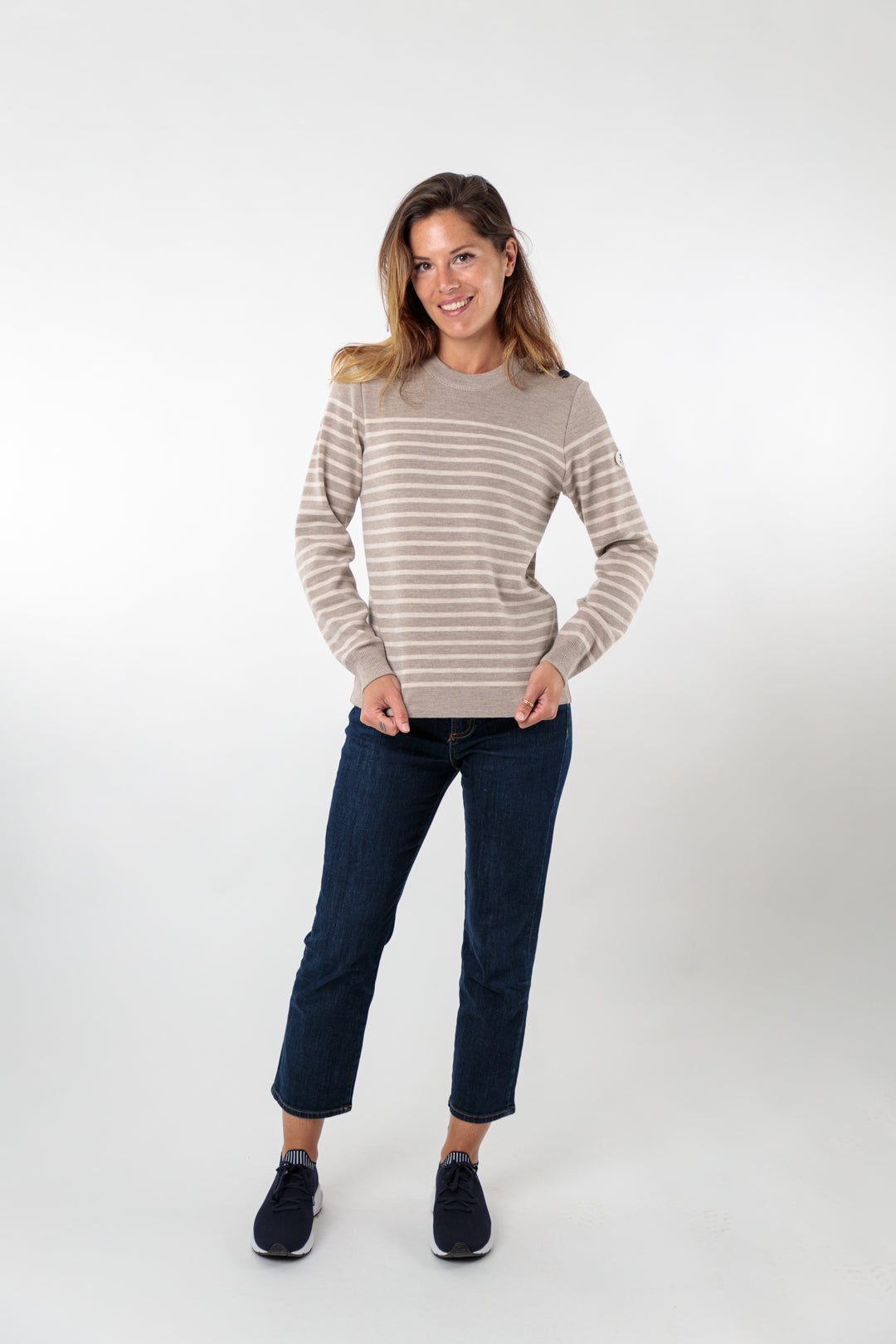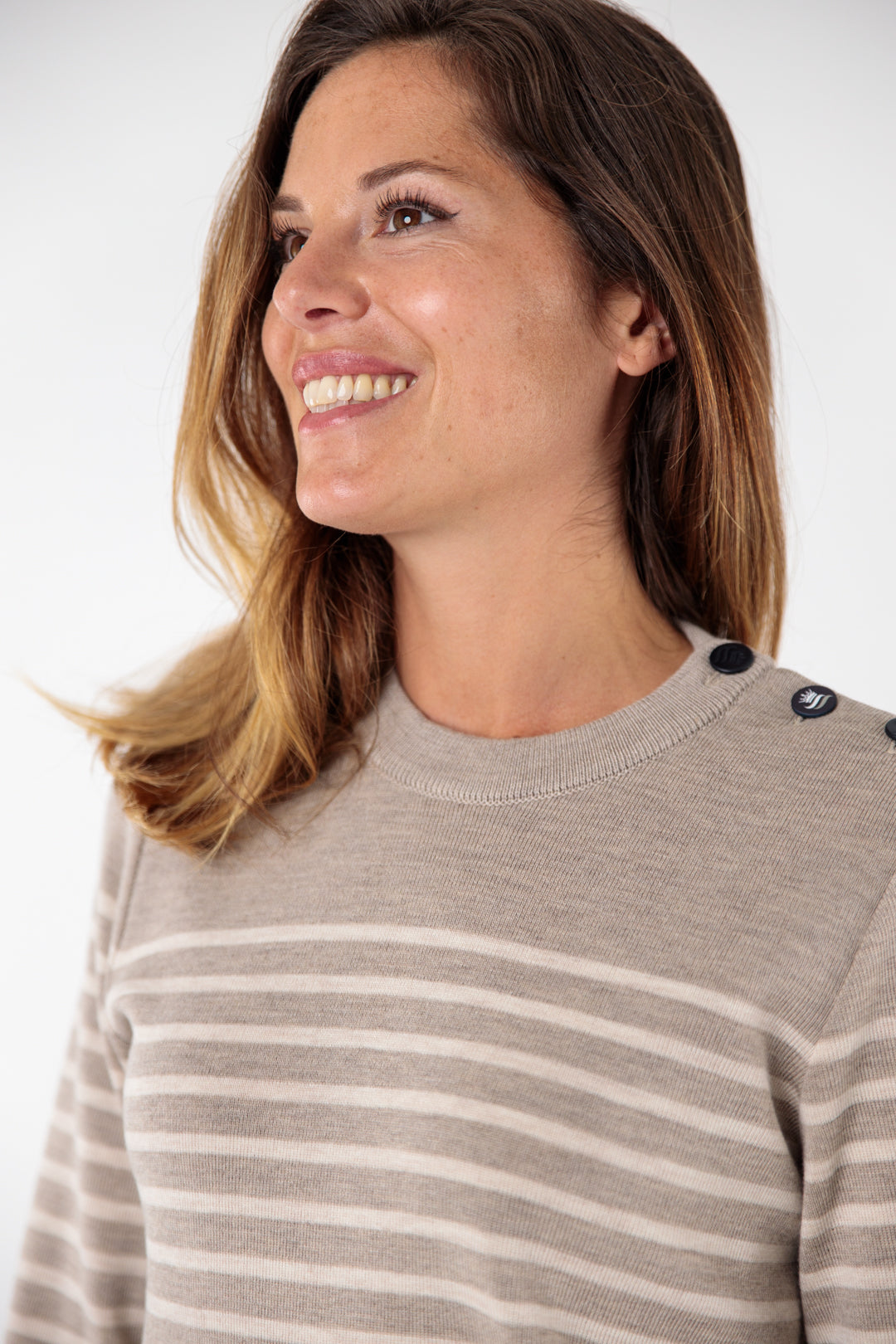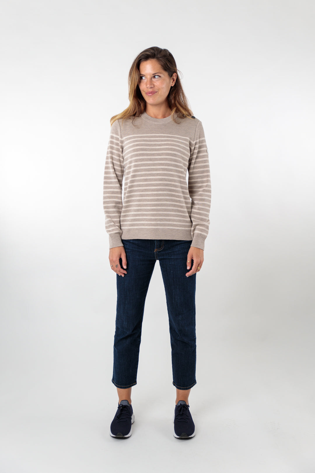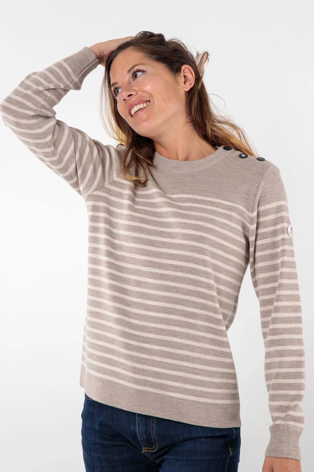 Pull marin rayé bouton mats