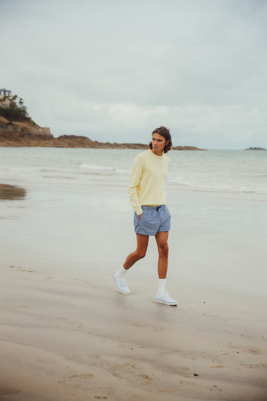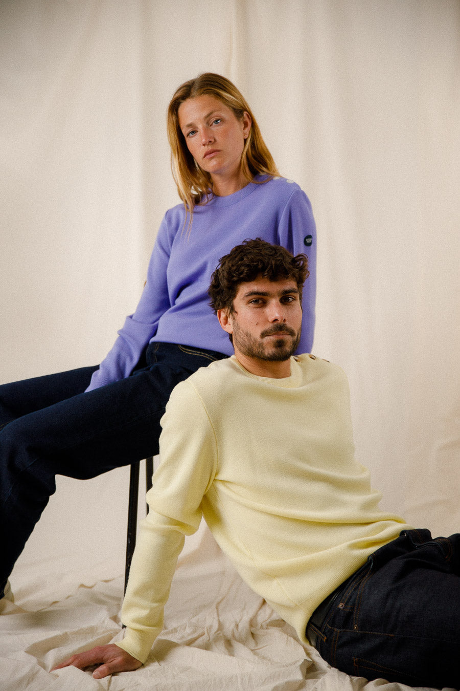 Le pull Armel est polyvalent et se prête à de nombreuses occasions décontractées, que ce soit pour une promenade sur la plage ou une sortie entre amis. Il se marie facilement avec des shorts rayés ou des jeans pour un look à la fois chic et décontracté. Ce modèle est également disponible dans d'autres coloris comme un violet doux, permettant à chacun de trouver son style.